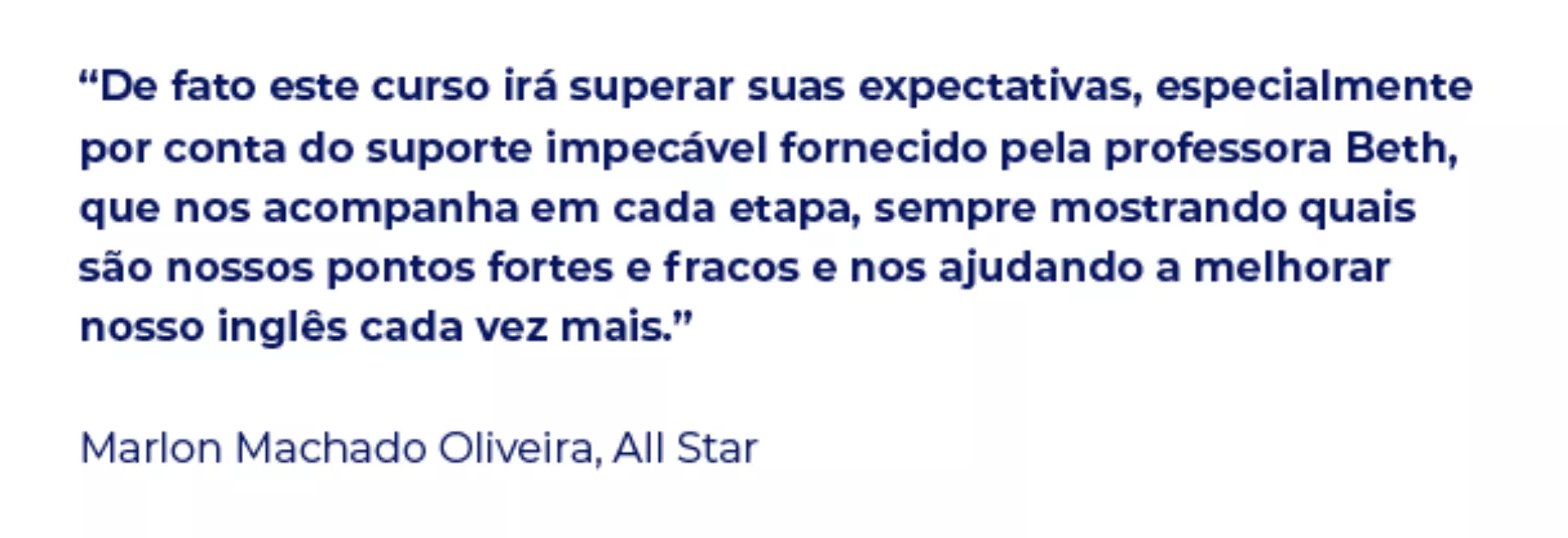 All Stars Squad é meu curso principal, um curso completo de inglês onde trabalhamos todas as habilidades no nível avançado.