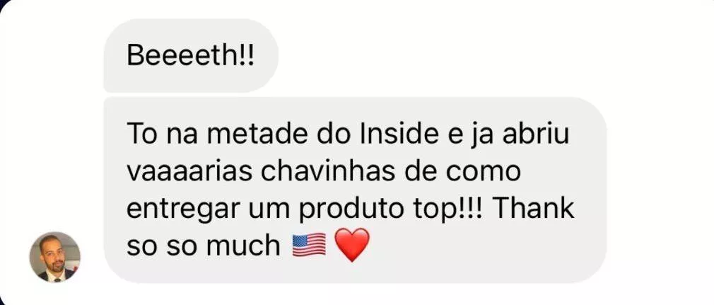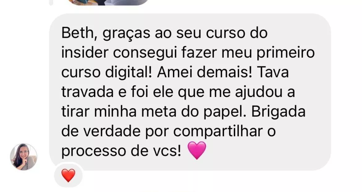 O Inside foi um divisor de águas na criação do meu curso. Já fiz mentorias para me ajudar a criar meu curso online e como oferecer as minhas alunas. Mas com o Inside, consegui enxergar outras possibilidades e como poder ensinar minhas alunas de forma diferenciada e personalizada, além de ter a oportunidade de organizar meu tempo tendo menos encontros semanais.