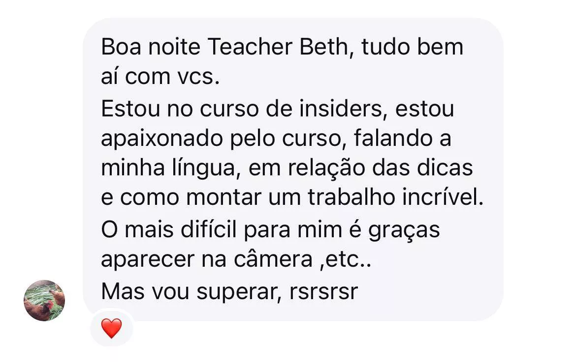 Este curso transforma o inglês dos meus alunos e é personalizado, porém sem comprometer minha saúde física e mental. Tenho liberdade com meu tempo e uma renda muito maior por causa do curso que criei.