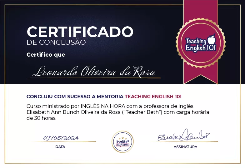 Durante Teaching English 101, você será acompanhado pela Teacher Beth para garantir seu desenvolvimento como professor(a) de inglês.